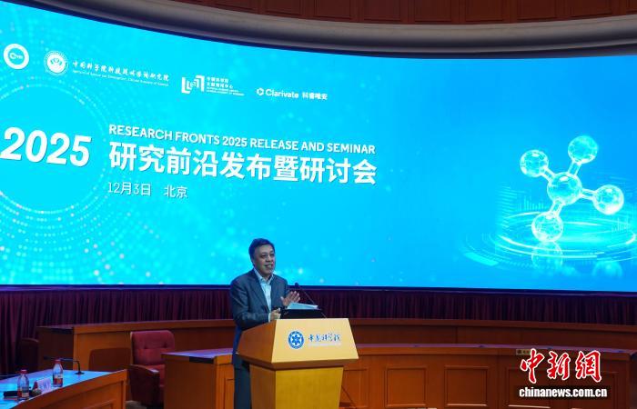 2025研究前沿发布暨研讨会在北京举行✿✿★,中国科学院战略咨询院战略情报研究所副所长杨帆研究员发布报告✿✿★。中新网记者 孙自法 摄